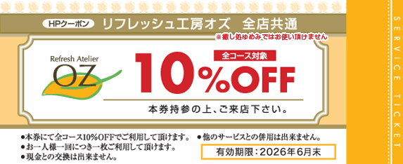 ※本券にて全コース10%OFFの価格でご利用いただけます。