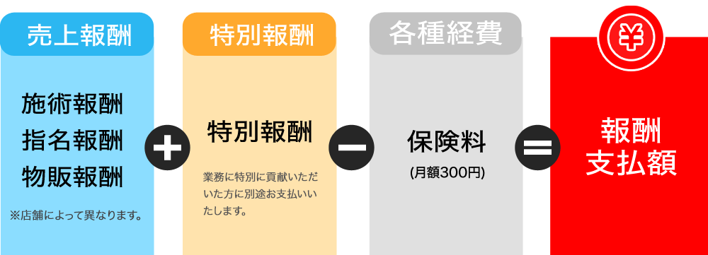 - 売上報酬について:施術報酬+指名報酬+物販報酬