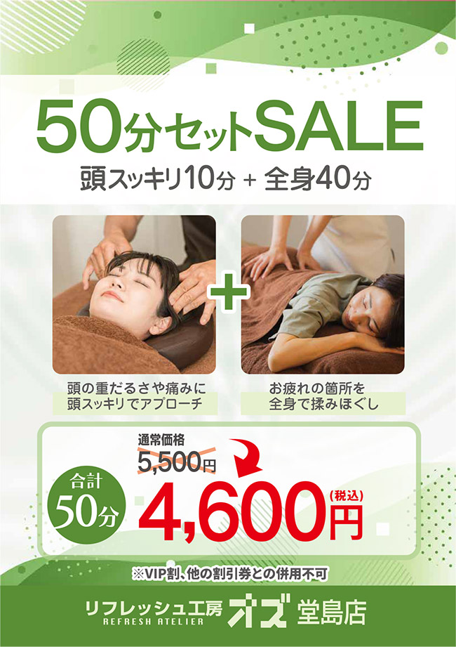 | 50分 | ¥5,000 (¥5,500) | ¥4,500 (¥4,950) |
